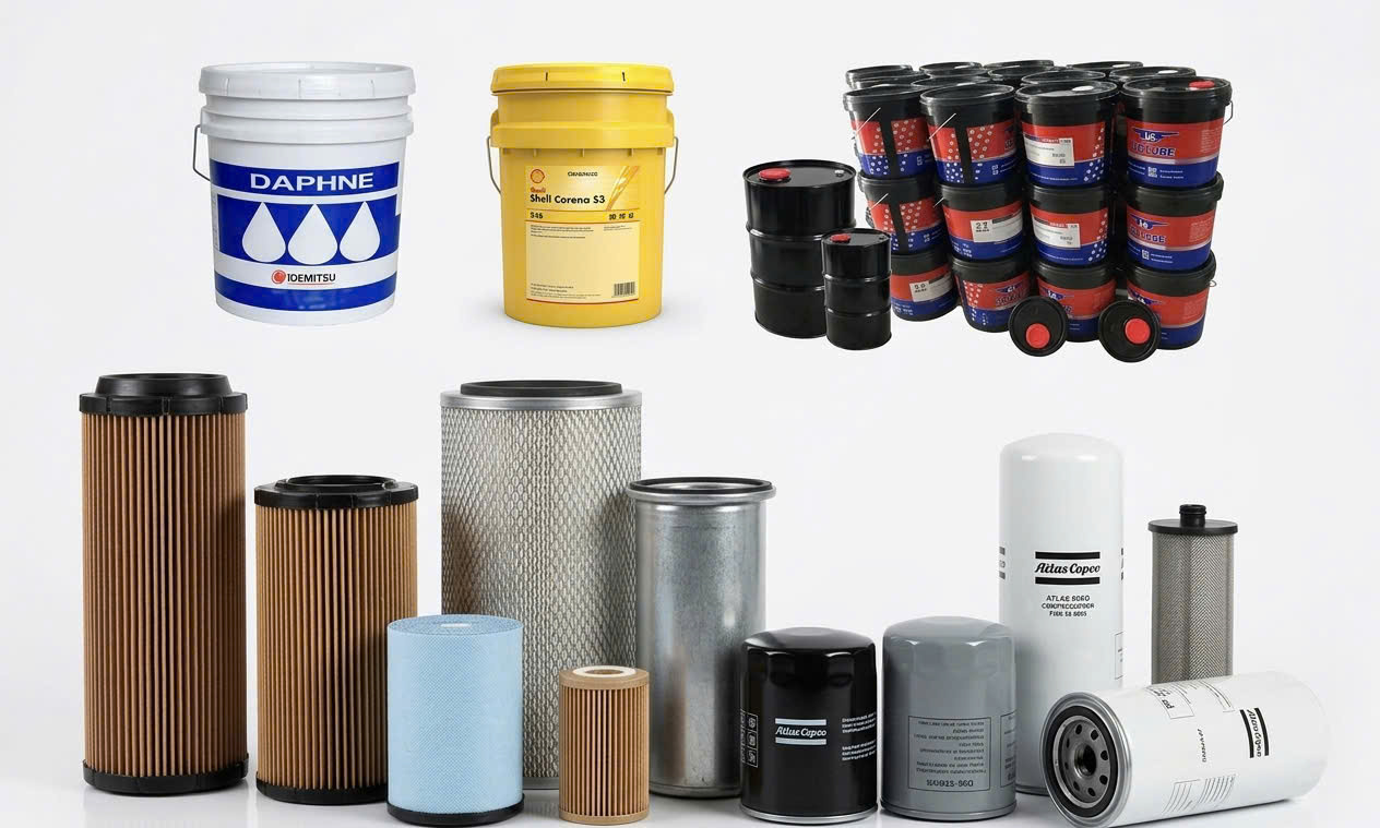 Bộ phụ tùng bảo dưỡng máy nén khí định kỳ gồm lọc tách và dầu máy nén khí