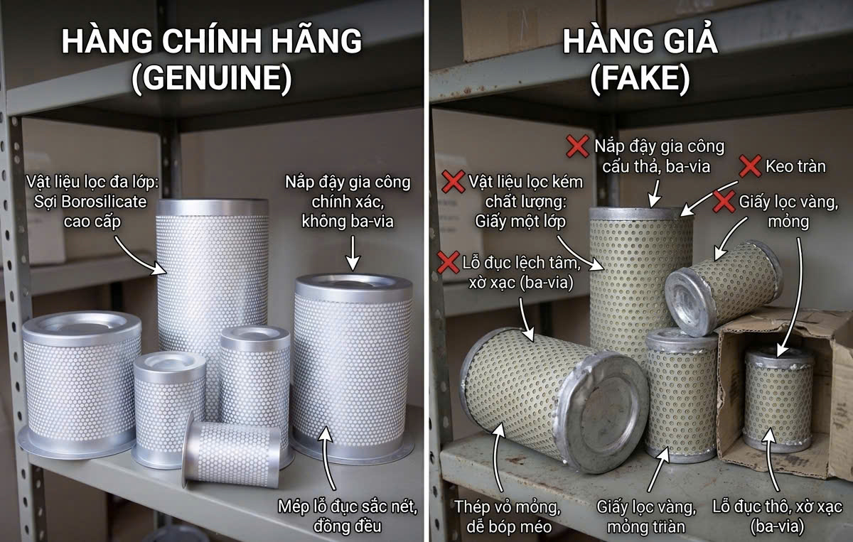 Việc phân biệt lọc tách dầu máy nén khí chính hãng và hàng giả không còn là câu chuyện về độ bền, mà là vấn đề của thiết bị.